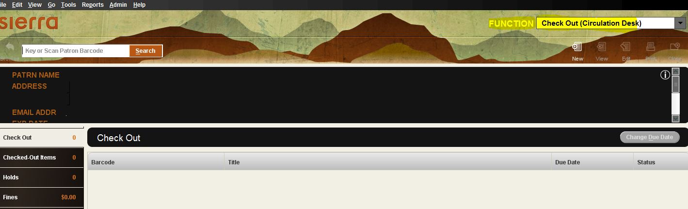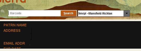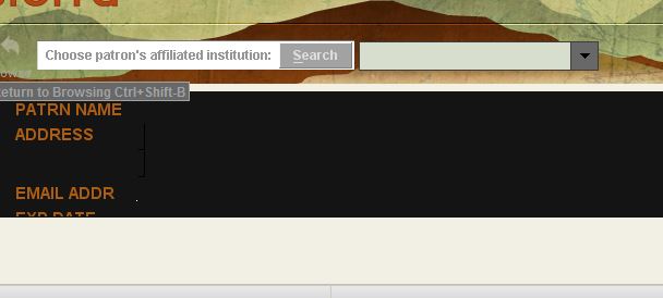Next select the patron's affiliated institution from the drop down list provided (upper left-hand side of screen). If the patron's institution is not listed, they cannot check out as a visiting patron: